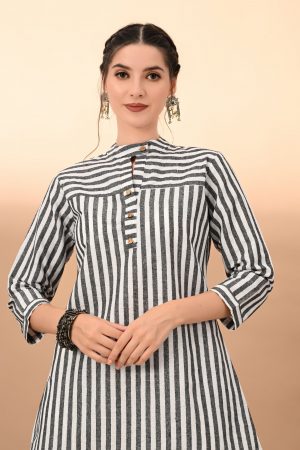 The Kairab South Cotton Short Kurta in black is a perfect choice for women and girls looking for a stylish yet comfortable outfit. Made from high-quality South cotton fabric, this kurta is lightweight, breathable, and soft on the skin. The black color enhances its elegance, making it suitable for both casual and semi-formal occasions. Whether paired with jeans, leggings, or palazzos, this versatile kurta offers a sophisticated and trendy look. Ideal for everyday wear, office wear, and festive gatherings.