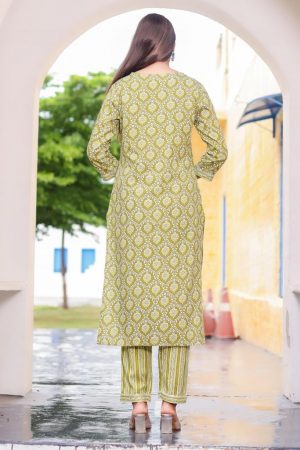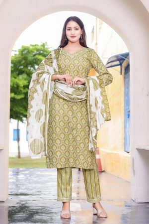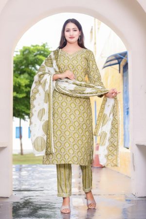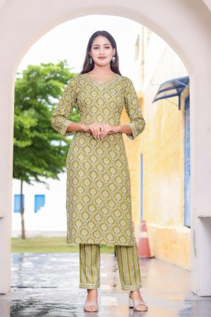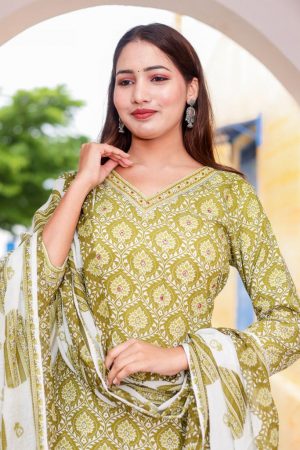 Elevate your ethnic wardrobe with the Kairab Women’s Printed Straight Kurta Set. Crafted from high-quality fabric, this set features intricate Adda work that enhances its traditional appeal. The straight-cut kurta offers a flattering fit, while the matching pants and dupatta complete the look with grace. Designed in a beautiful green shade, this ensemble is perfect for festive gatherings, casual outings, or special occasions. Pair it with statement jewelry and traditional footwear for an effortlessly chic look.