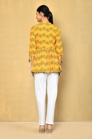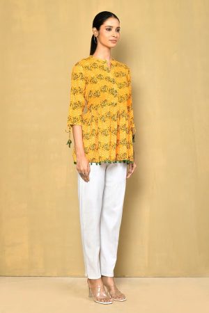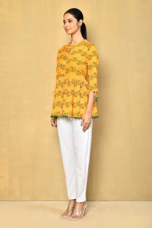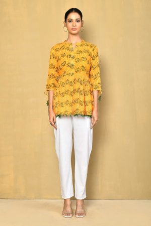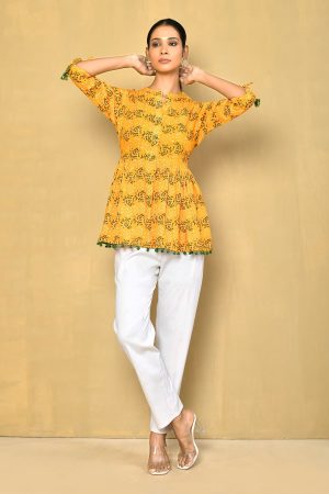 Add a touch of elegance to your wardrobe with the Kairab Women’s Printed Top. Crafted from high-quality fabric, this top features a beautiful ethnic print in a lively orange shade. The delicate pom-pom accents along the hem and sleeves enhance its charm, making it a must-have for fashion enthusiasts. Designed for both comfort and style, this top pairs effortlessly with jeans, skirts, or palazzos, making it ideal for casual outings, festive gatherings, or everyday wear. Elevate your look with this trendy and versatile piece.