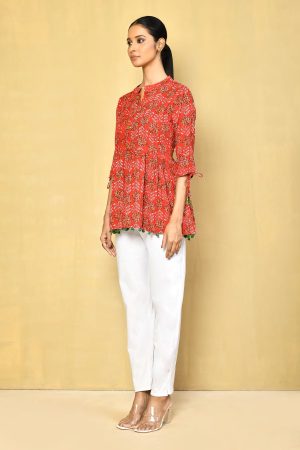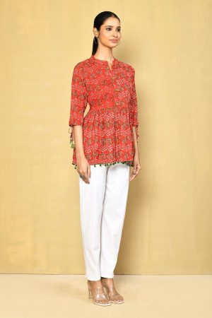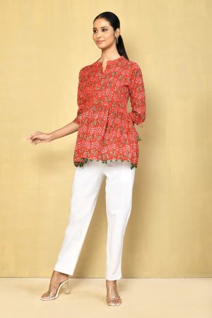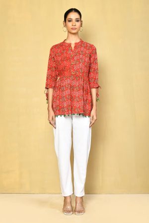 Kairab Women's Printed Top With Pom Pom - Kairab Jaipur