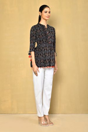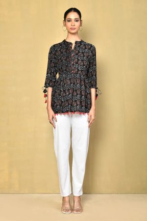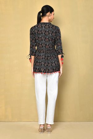 Kairab Women's Printed Top With Pom Pom - Kairab Jaipur