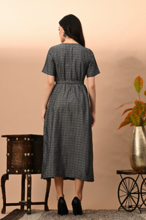 Embrace the sophistication of tradition with a bold modern twist in Kairab’s black yarn dobby angrakha belt work kurta. Crafted from breathable yarn dobby fabric, this kurta features a rich texture and a graceful drape that moves beautifully with you. The timeless angrakha cut, known for its overlapping front and side-tie style, is elevated with intricate belt detailing that defines your waist for a flattering, feminine silhouette.